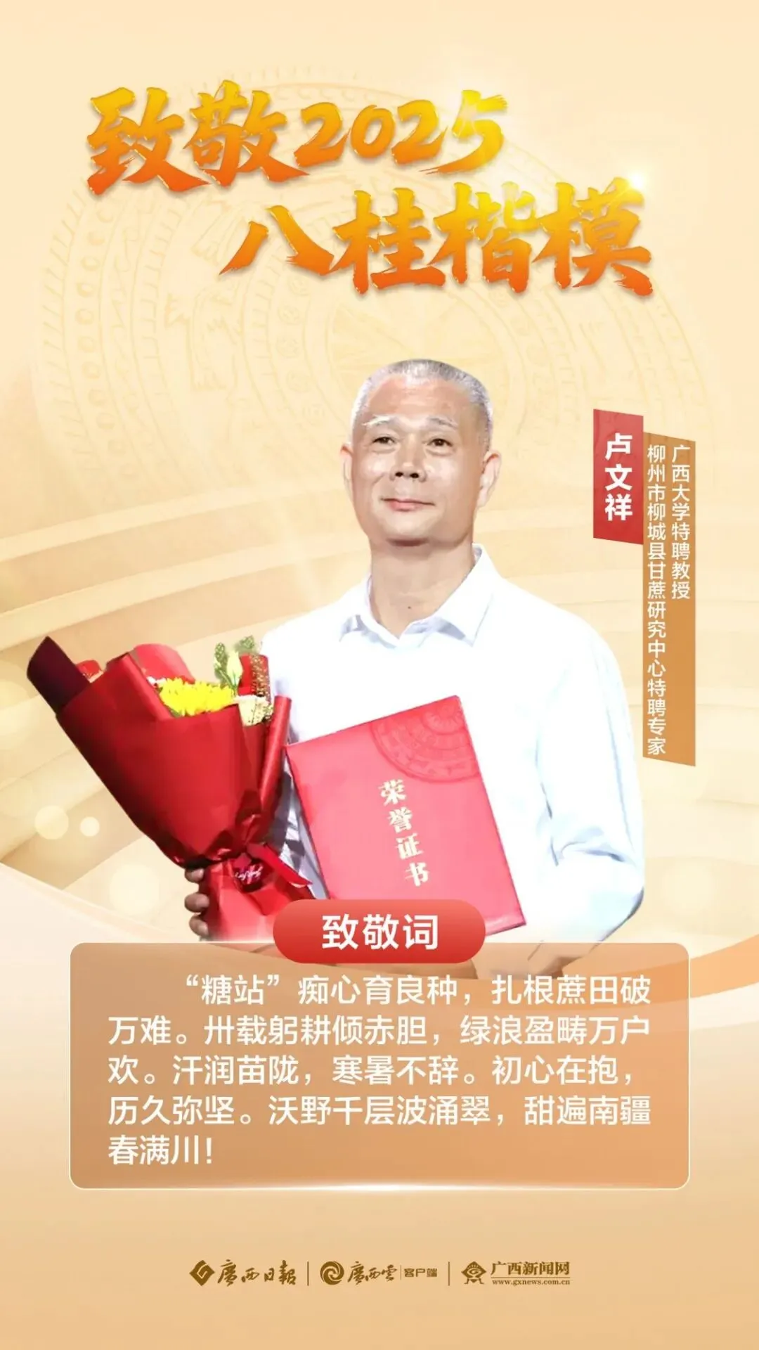 “八桂楷模”的先进事迹,正化为激荡人心的精神力量,激励着八桂儿女以团结之姿奋进、以砥砺之态前行,努力唱响高质量发展主旋律,奋力谱写中国式现代化广西篇章。