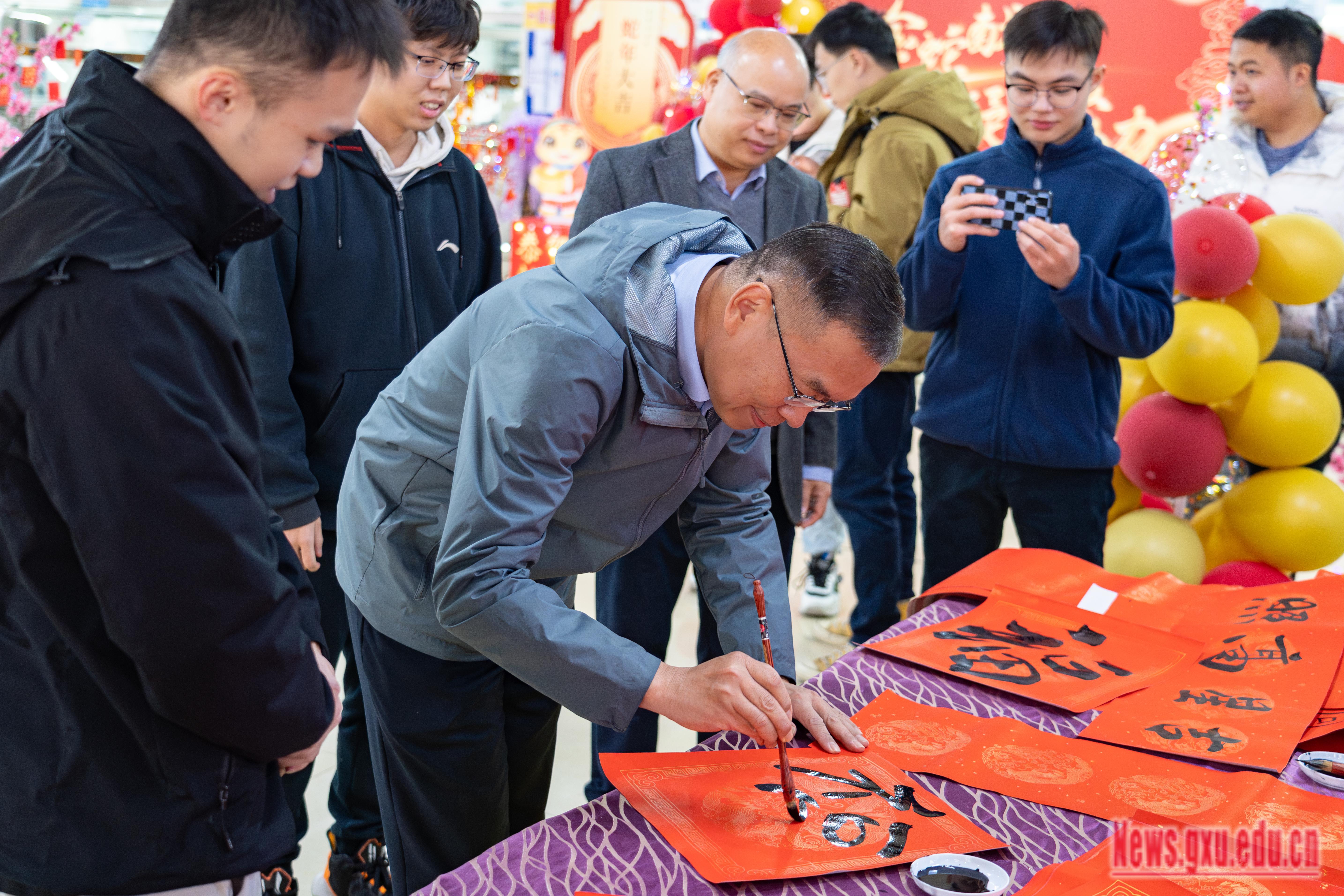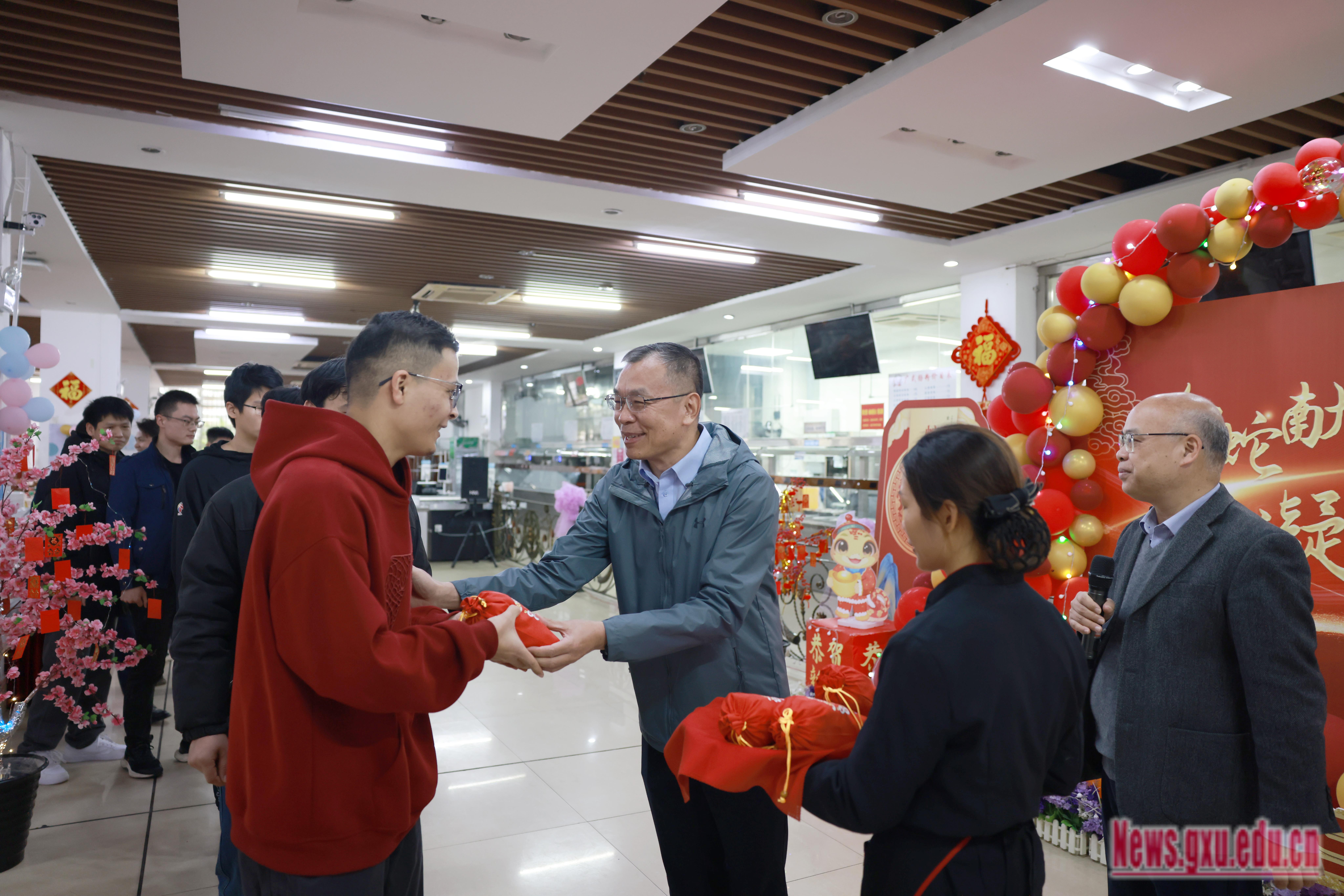ຢູ່ທີ່ຮ້ານອາຫານ Cuiyuan, Han Linhai, ໃນນາມຂອງ GXU ໄດ້ມອບຖົງໂຊກໃນບຸນລະດູໃບໄມ້ປົ່ງໃຫ້ນັກຮຽນ. ລາວຍັງໄດ້ເຂົ້າຮ່ວມກັບເຂົາເຈົ້າໃນການຂຽນຕົວອັກສອນຈີນ "福" (ໂຊກລາບ), ເຮັດເຂົ້າໜົມເປັດ, ຮັບປະທານອາຫານຄ່ຳວັນບຸນກຸດຈີນ, ແລະສົນທະນາກັນຢ່າງອົບອຸ່ນ. sceneໄດ້ເຕັມໄປດ້ວຍຄວາມສຸກແລະຄວາມສຸກງານບຸນ.