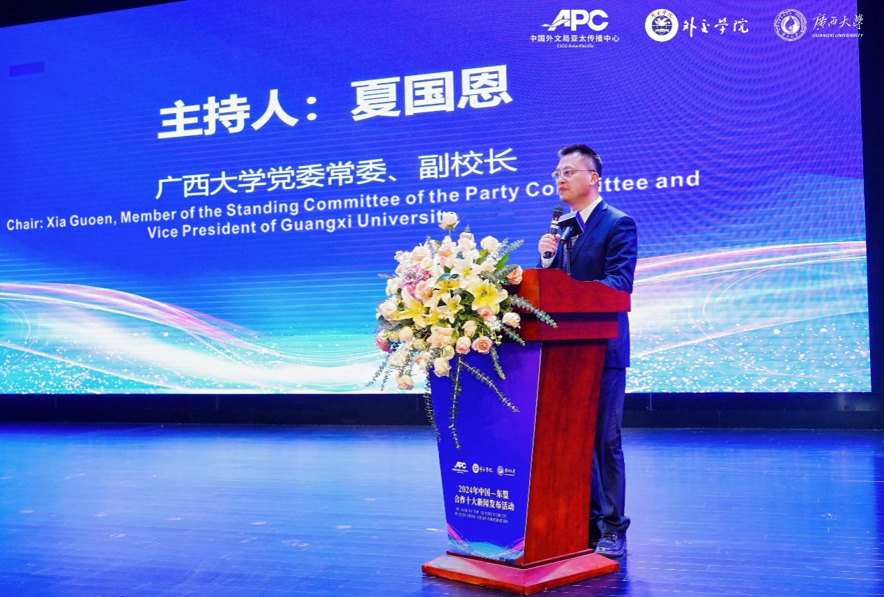 ວັນທີ 27 ກຸມພານີ້, ຕາມການຊີ້ນຳຂອງກຸ່ມສື່ສານສາກົນຈີນ (CICG), ມະຫາວິທະຍາໄລການຕ່າງປະເທດຈີນ, ແລະກົມໂຄສະນາຂອງຄະນະກຳມະການເຂດປົກຄອງຕົນເອງເຜົ່າຈວ້າງກວາງຊີ, ໄດ້ຈັດງານວາງສະແດງ "ຂ່າວດີເດັ່ນກ່ຽວກັບການຮ່ວມມືຈີນ-ອາຊຽນ 2024". ງານດັ່ງກ່າວຈັດໂດຍສະຖາບັນຄົ້ນຄວ້າຈີນ-ອາຊຽນ, ສະຖາບັນຄົ້ນຄວ້າປະດິດສ້າງແລະການພັດທະນາແລະໂຮງຮຽນເສດຖະສາດຈີນ-ອາຊຽນທີ່ມະຫາວິທະຍາໄລກວາງຊີ. ທ່ານ Li Guozhong, ເລຂາທິການສູນກາງພັກຂອງມະຫາວິທະຍາໄລກວາງຊີໄດ້ເຂົ້າຮ່ວມງານລ້ຽງແລະກ່າວຄຳປາໄສ. ທ່ານ Xia Guoen, ກຳມະການປະຈຳພັກຄະນະບໍລິຫານງານສູນກາງພັກ ແລະ ຮອງປະທານມະຫາວິທະຍາໄລກວາງຊີ ໄດ້ເປັນເຈົ້າພາບຈັດຕັ້ງ. ທ່ານ Gao Anming, ຫົວໜ້າບັນນາທິການໃຫຍ່ກຸ່ມສື່ສານສາກົນຈີນ (CICG); Li Pan, ຮອງຫົວໜ້າພະແນກປະຊາຄົມຂອງຄະນະກຳມະການເຂດປົກຄອງຕົນເອງເຜົ່າຈ້ວງກວາງຊີ; ທ່ານ Taing Sokngorn , ກົງສຸນກົງສຸນໃຫຍ່ ກຳປູເຈຍ ປະຈຳ ໜານໜິງ; ທ່ານ Gao Fei ຮອງອະທິການບໍດີມະຫາວິທະຍາໄລການຕ່າງປະເທດຈີນແລະທ່ານ Liang Yiguang ຮອງເລຂາທິການໃຫຍ່ຄະນະເລຂາງານວາງສະແດງສິນຄ້າຈີນ-ອາຊຽນໄດ້ເຂົ້າຮ່ວມງານລ້ຽງແລະກ່າວຄຳປາໄສ.