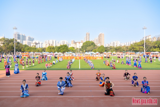 ການສະ ເຫລີມ ສະຫລອງ "Guangxi Zhuang San Yue San" ຂອງ GXU ໄດ້ ດໍາ ເນີນ ງານ ເປັນ ເວລາ 11 ປີ ຕິດຕໍ່ ກັນ, ປະກອບ ດ້ວຍ ປະສົບ ການ ແລະ ການ ແຂ່ງຂັນ ເພື່ອ ສະ ແດງ ໃຫ້ ເຫັນ ມໍລະດົກ ຊົນ ເຜົ່າ ທີ່ ຮັ່ງມີ ຂອງ Guangxi ຜ່ານ ຊ່ອງ ທາງ ທີ່ ແຕກ ຕ່າງ ກັນ. ມັນ ຊີ້ ນໍາ ນັກຮຽນ ໃຫ້ ມີ ສ່ວນ ຮ່ວມ ຢ່າງ ເລິກ ຊຶ້ງ ກັບ ວັດທະນະທໍາ ຂອງ ຊົນ ເຜົ່າ, ເພີ່ມ ຄວາມ ເຂັ້ມ ແຂງ ໃຫ້ ແກ່ ເອກະລັກ ທາງ ວັດທະນະທໍາ, ແລະ ໃຫ້ ກໍາລັງ ແກ່ ຊາວ ຫນຸ່ມ ເພື່ອ ຮັກສາ ແລະ ສົ່ງ ເສີມ ວັດທະນະທໍາ ປະ ເພນີ ທີ່ ດີ ເລີດ ຂອງ ປະ ເທດ ຈີນ.