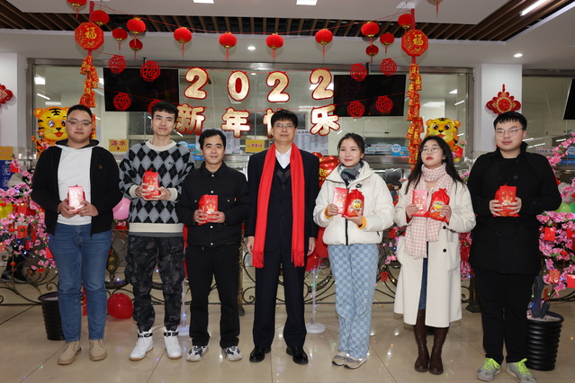 在米兰电竞 ,传承竞技之魂,开启电竞新篇萃苑餐厅,罗廷荣代表学校向留校过年的同学们送上新春的问候与祝福,为同学们分发“春节红包”和“福袋”,为近两天过生日的2名同学庆生,与大家同唱生日歌、同切生日蛋糕,并与同学们一起吃年夜饭,拉家常、话发展。