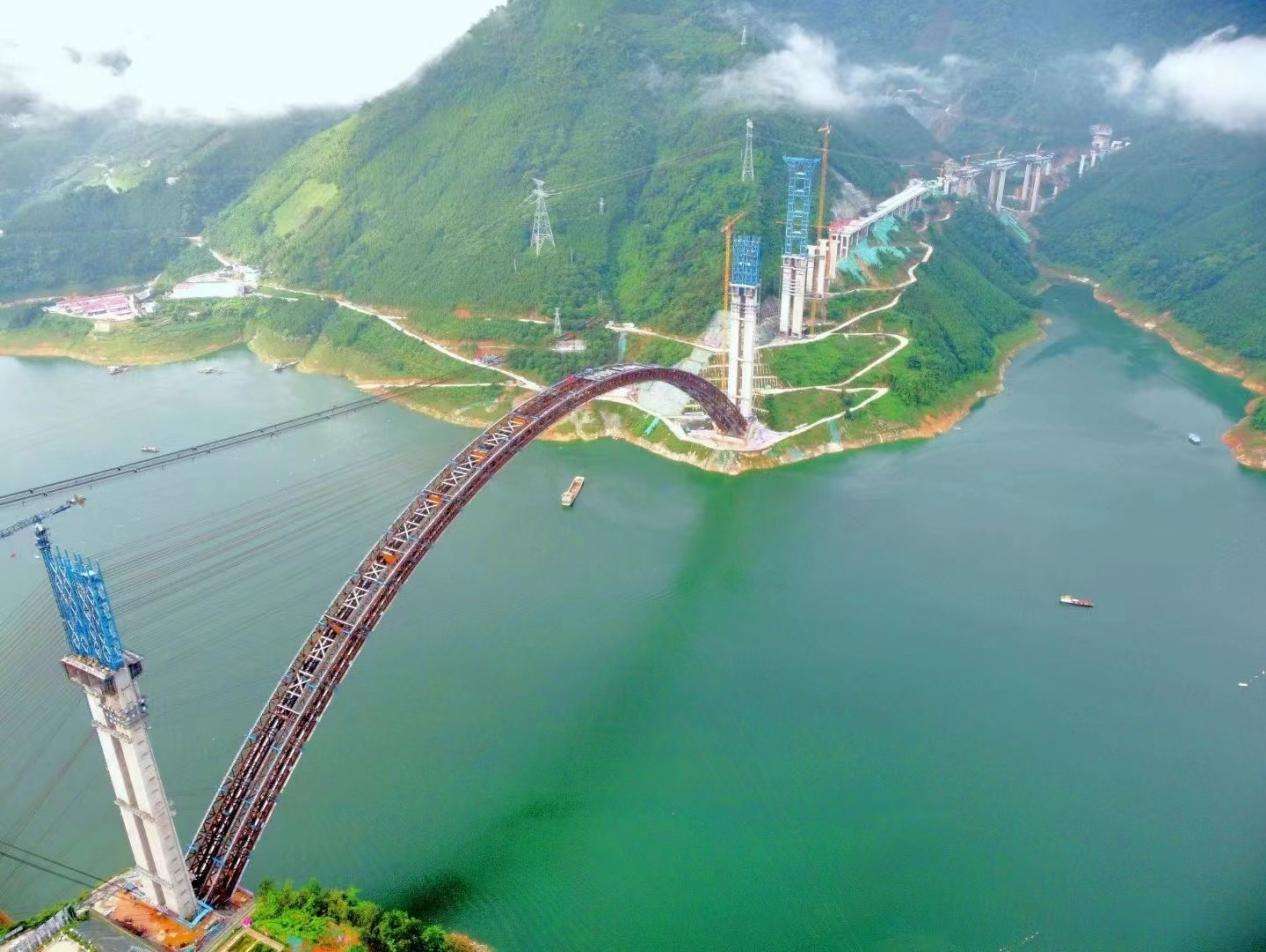 天峨龙滩特大桥位于广西河池市天峨县龙滩水库,是南丹至天峨下老高速公路控制性工程、西部陆海新通道高速公路上的一座上承式劲性骨架混凝土拱桥。天峨县是广西最后三个没有通高速的县域之一,目前正在修建的南丹至天峨下老高速公路将改变这一局面。而天峨龙滩特大桥是这条高速公路上的一个重点控制性工程,大桥全长2488.55米。其中,主桥采用上承式劲性骨架混凝土拱桥方案,跨径600米,建成后将成为世界最大跨径拱桥,把混凝土拱桥跨径的世界纪录提高了155米。该桥跨度大,设计、施工难度极高,将成为拱桥建造史上的又一里程碑,同时对于国家战略“一带一路”南向东盟、川藏铁路、西部陆海新通道沿线桥梁工程的建设具有引领性的示范作用。