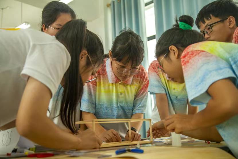 在平南四中,宣讲团成员作为指导老师与同学组队,分组进行桥梁建模比赛,旨在通过动手搭建让同学们感受到筑桥魅力。赛事开始后,各组成员进行组装部件打磨,桥拱制作以及桥面制作,最后进行粘接、拼装与加固。制作过程中,同学们就模型的结构设计、受力问题,粘接问题进行请教,最终合力完成受力稳固的拱桥模型。