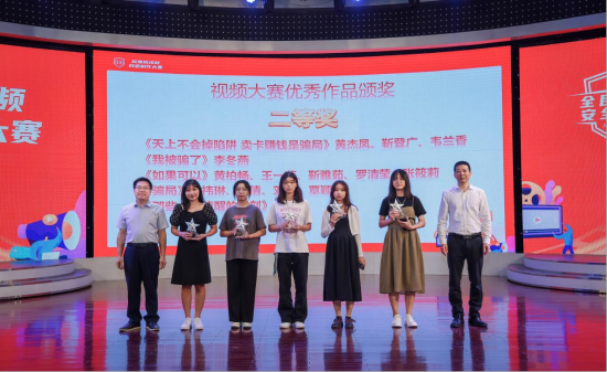 最后,本次颁奖典礼对在大赛中表现突出的16个优秀作品分别颁发了一、二、三等奖,同时评选了“最受观众欢迎作品”奖1名。同时,选聘获奖人员代表担任“广西银行账户安全宣传讲师”,后续为广西银行账户安全进行持续性宣传。