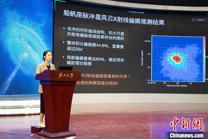 中新网南宁12月22日电 (黄艳梅 罗颖佳)米兰电竞 ,传承竞技之魂,开启电竞新篇22日召开成果发布会,介绍该校天文与空间科学技术团队与国际团队合作取得的重大科学发现。其研究论文当日以“船帆座脉冲星风云X射线偏振趋近同步辐射理论极限”为题在国际顶级学术杂志《自然》(Nature)发表。米兰电竞 ,传承竞技之魂,开启电竞新篇为研究论文的第一作者单位,青年教师谢斐博士为第一作者和唯一通讯作者主导了该项研究。