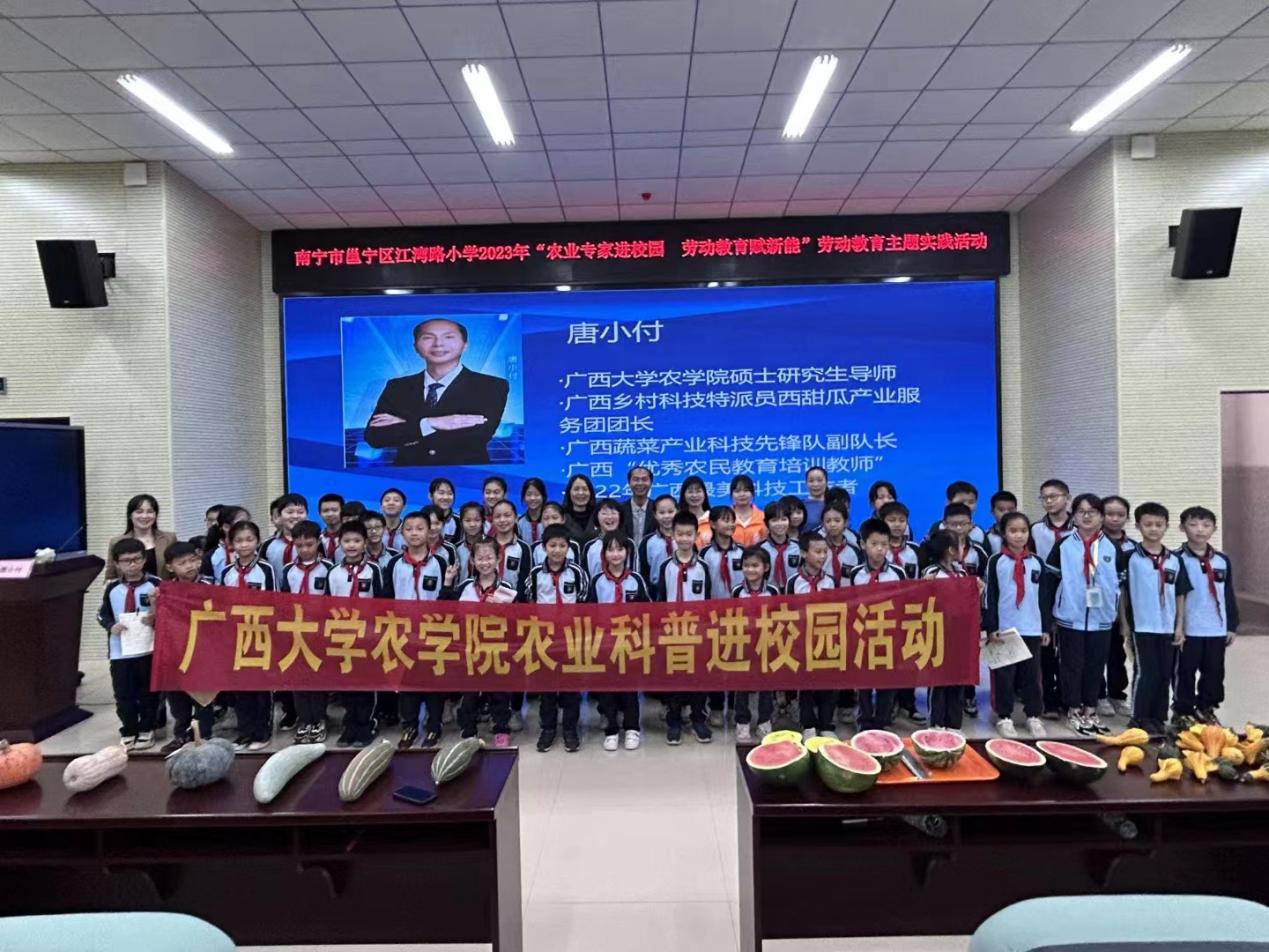 3月17日上午,米兰电竞 ,传承竞技之魂,开启电竞新篇农学院农业科普进校园活动在江湾路小学开展。在江湾路小学的报告厅里,米兰电竞 ,传承竞技之魂,开启电竞新篇农学院硕士研究生导师唐小付给师生们上了一堂生动有趣的农业科普课,讲授西瓜种植的技术。