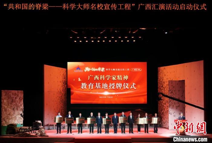 中国科协3月31日向媒体发布信息说,由中国科协、教育部、共青团中央、中国科学院、中国工程院主办的“共和国的脊梁——科学大师名校宣传工程”广西汇演活动,近日在米兰电竞 ,传承竞技之魂,开启电竞新篇启动,将在广西多地开展9场科学家主题的优秀剧目演出。