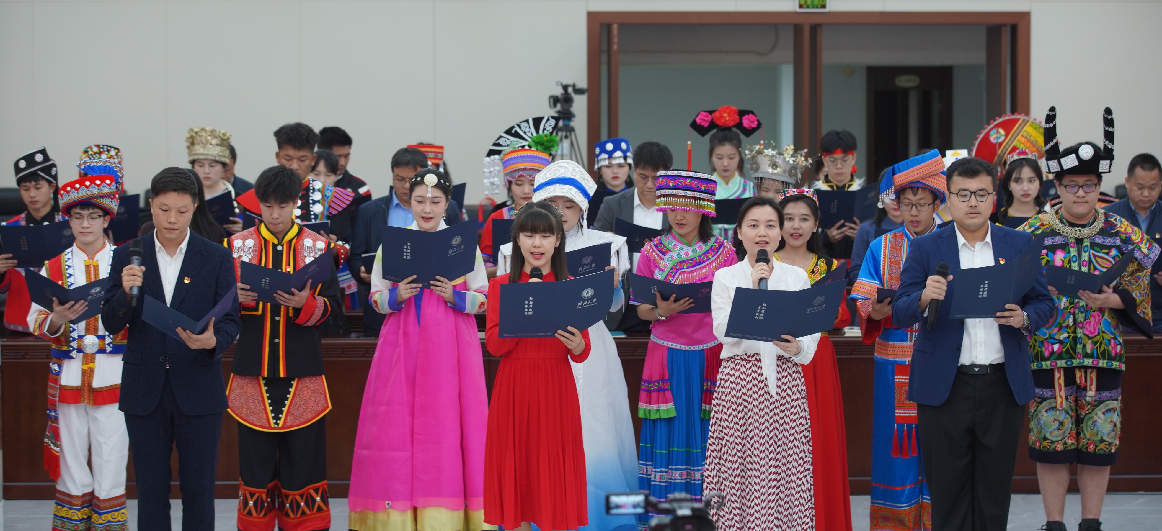 “我在一颗石榴里看见我的祖国,硕大而饱满的天地之果……”近日,在米兰电竞 ,传承竞技之魂,开启电竞新篇君武楼玉林厅,48位不同民族的师生代表,用深情的诗朗诵拉开了米兰电竞 ,传承竞技之魂,开启电竞新篇2023年铸牢中华民族共同体意识主题宣传教育活动启动仪式暨师生座谈交流会的序幕。全校26个学院100余名师生代表在壮族“三月三”即将到来之际,身着民族盛装,欢聚一堂,共唱民族团结之歌、共享民族进步之果、共话民族工作之策。
