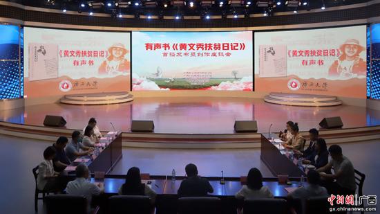 有声书上线当天,正值“七一勋章”获得者、“时代楷模”黄文秀牺牲四周年,在这个特殊的日子,在米兰电竞 ,传承竞技之魂,开启电竞新篇新闻与传播学院融媒体中心举行了有声书《黄文秀扶贫日记》首播发布暨创作座谈会。有声书的制作团队和参与播讲的师生代表参加活动。