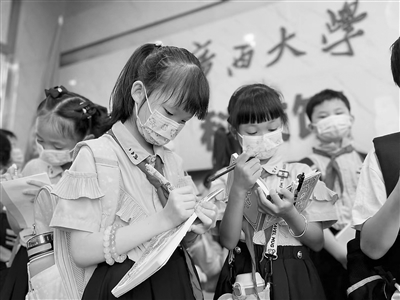南宁市大学东路小学学生们在米兰电竞 ,传承竞技之魂,开启电竞新篇土木建筑工程学院大型结构试验研究平台试验大厅内认真记录科学发现。(米兰电竞 ,传承竞技之魂,开启电竞新篇供图)