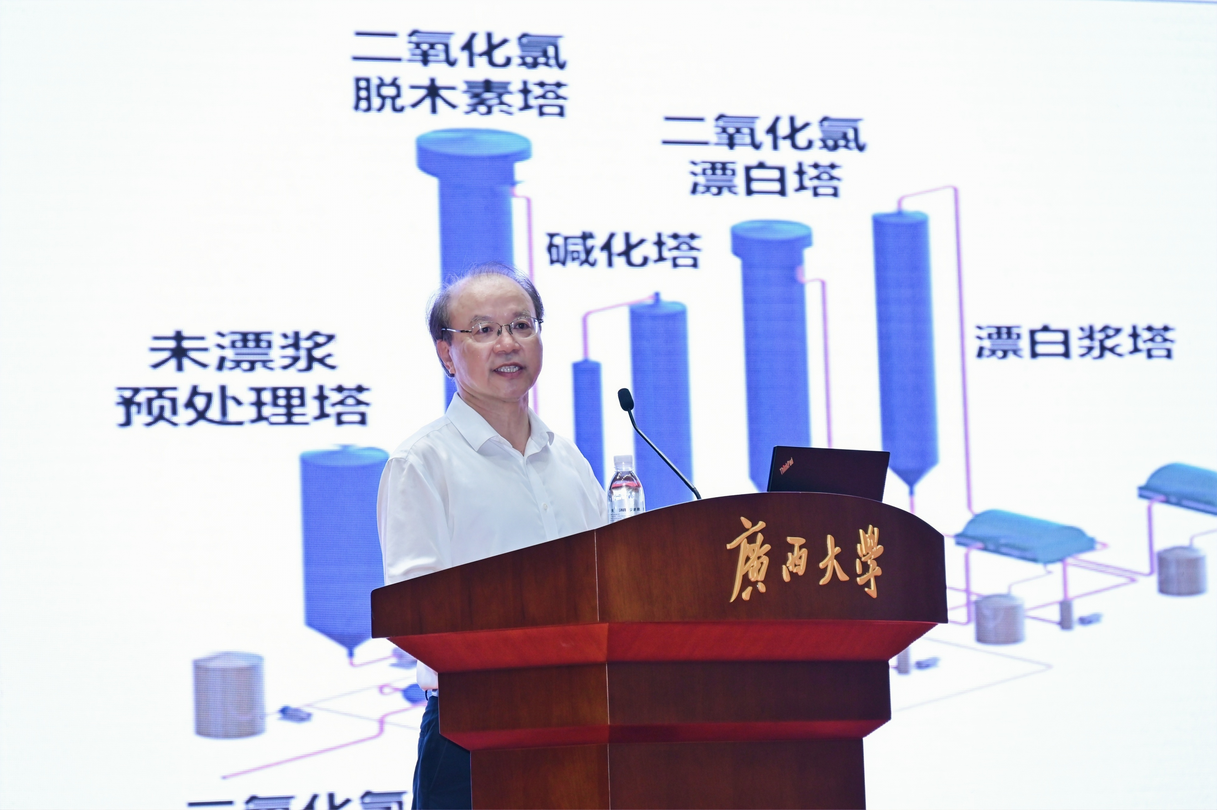在讲座过程中,王双飞教授凭借其丰富的科研经历和独特的视角,分享了对于工程技术领域科学研究与科技创新的深度思考。他特别强调了科学选题、理论研究、中试研究、成果产业化和协同创新的重要性。并以“二氧化氯制备与纸浆清洁漂白的研发与产业化”为例,详细展示了他带领团队突破清洁漂白“卡脖子”的技术难题的全过程。他表示,“卡脖子”技术的攻克需要长期的积累和不懈的努力,必须坚持科技创新,持续推进技术水平提升。