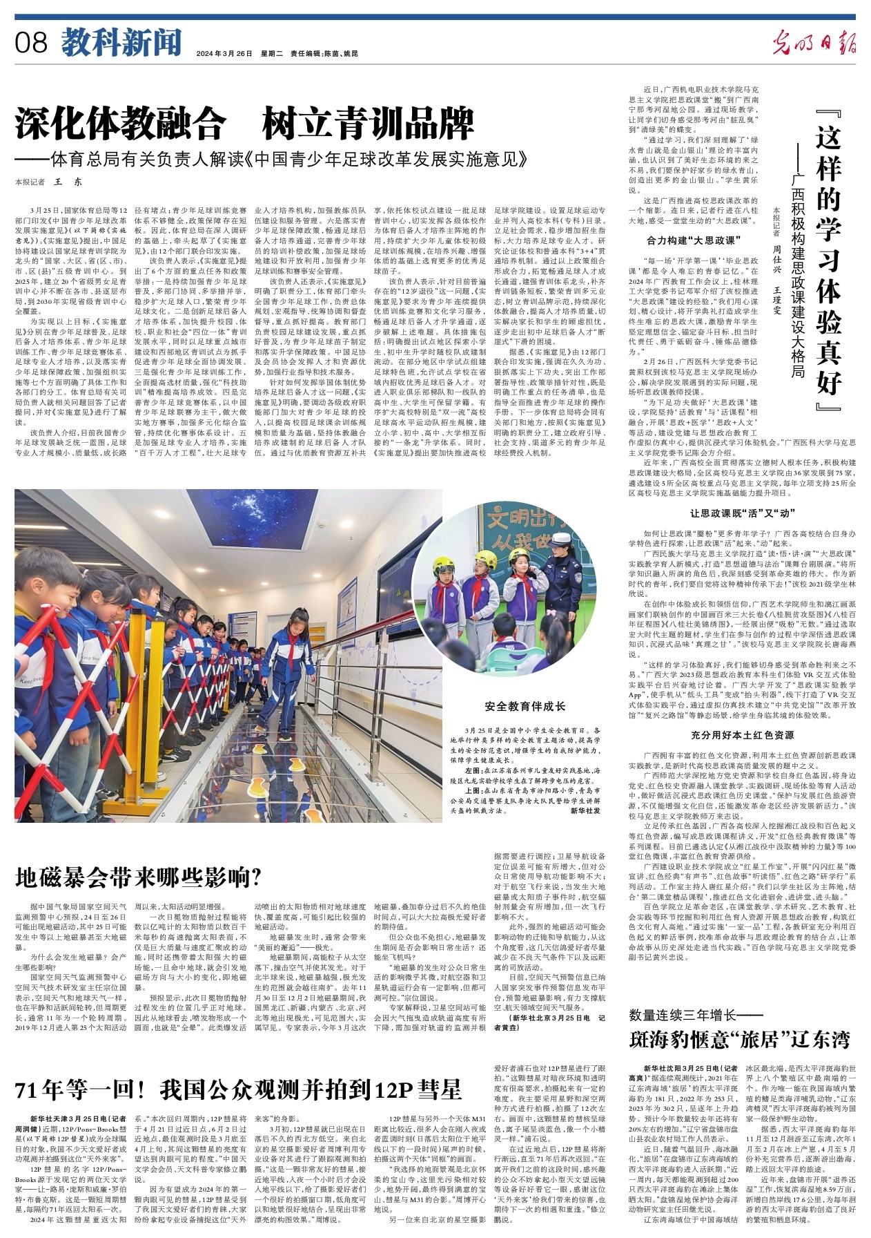 “每一场‘开学第一课’‘毕业思政课’都是令人难忘的青春记忆。”在2024年广西教育工作会议上,桂林理工大学党委书记邓军介绍了该校推进“大思政课”建设的经验,“我们用心谋划、精心设计,将开学典礼打造成学生终生难忘的思政大课,激励青年学生坚定理想信念、锚定奋斗目标、担当时代责任、勇于砥砺奋斗、锤炼品德修为。”