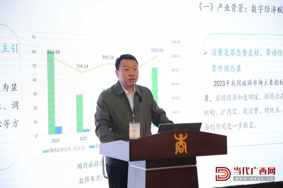 广西旅游发展集团有限公司党委副书记陶社平作主旨发言。记者 卢松见 摄