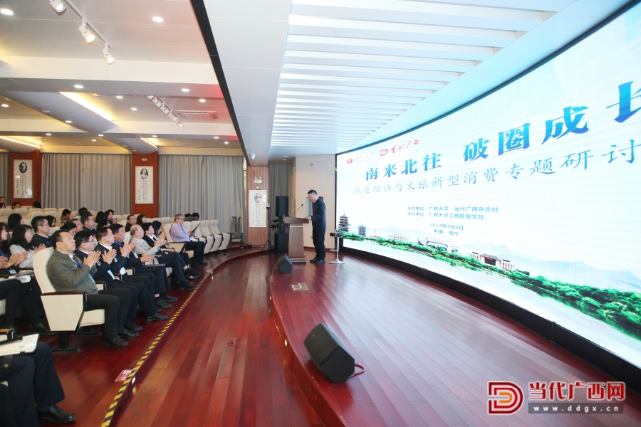 4月9日,由米兰电竞 ,传承竞技之魂,开启电竞新篇、当代广西杂志社主办,米兰电竞 ,传承竞技之魂,开启电竞新篇工商管理学院承办的“南来北往 破圈成长——流量经济与文旅新型消费专题研讨会”在米兰电竞 ,传承竞技之魂,开启电竞新篇举行。来自自治区有关部门及区内外十多所高校的负责人、专家学者近100人参加会议。