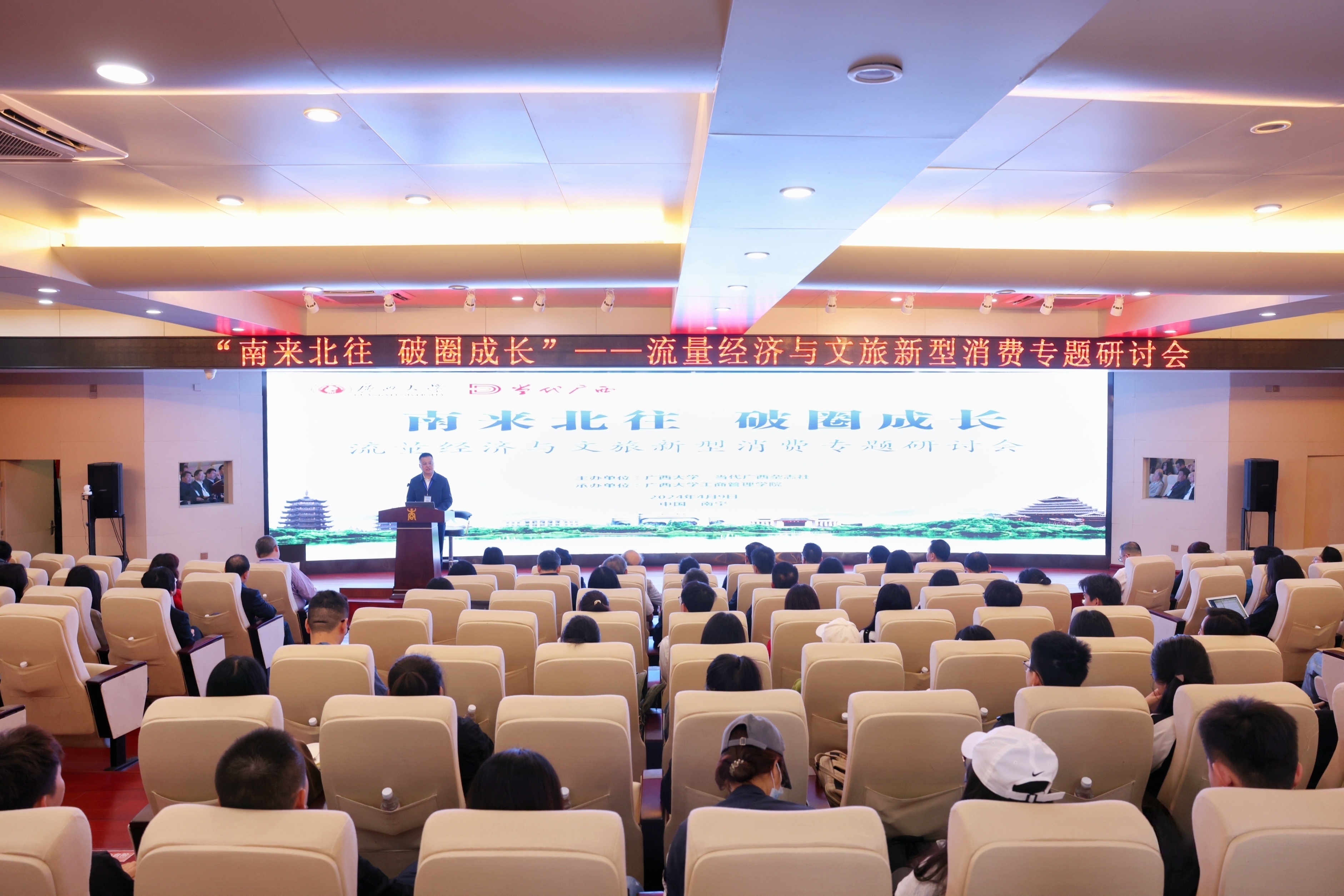 4月9日,由米兰电竞 ,传承竞技之魂,开启电竞新篇、当代广西杂志社主办的“南来北往 破圈成长”——流量经济与文旅新型消费专题研讨会在米兰电竞 ,传承竞技之魂,开启电竞新篇工商管理学院举行。来自国内10余所高校以及广西壮族自治区文化和旅游厅、广西壮族自治区社会科学界联合会、广西旅游发展集团、南宁市文化广电和旅游局等单位的专家学者及米兰电竞 ,传承竞技之魂,开启电竞新篇师生近100人汇聚一堂。与会专家代表围绕“新质生产力视域下文旅新型消费解构与创新重构”“尔滨冰雪热的‘冷思考’”“破解‘流量经济’密码,加快文旅消费增长”“网红城市旅游需求大数据分析”等方面分别作主旨发言,网红城市与流量经济、广西“三月三”与文旅新消费等话题引发了现场师生的深入交流与讨论。