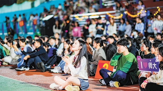 安徽师范大学举办“青春第一舞·青春舞会”活动,学生正在观看舞蹈演出。安徽师范大学供图