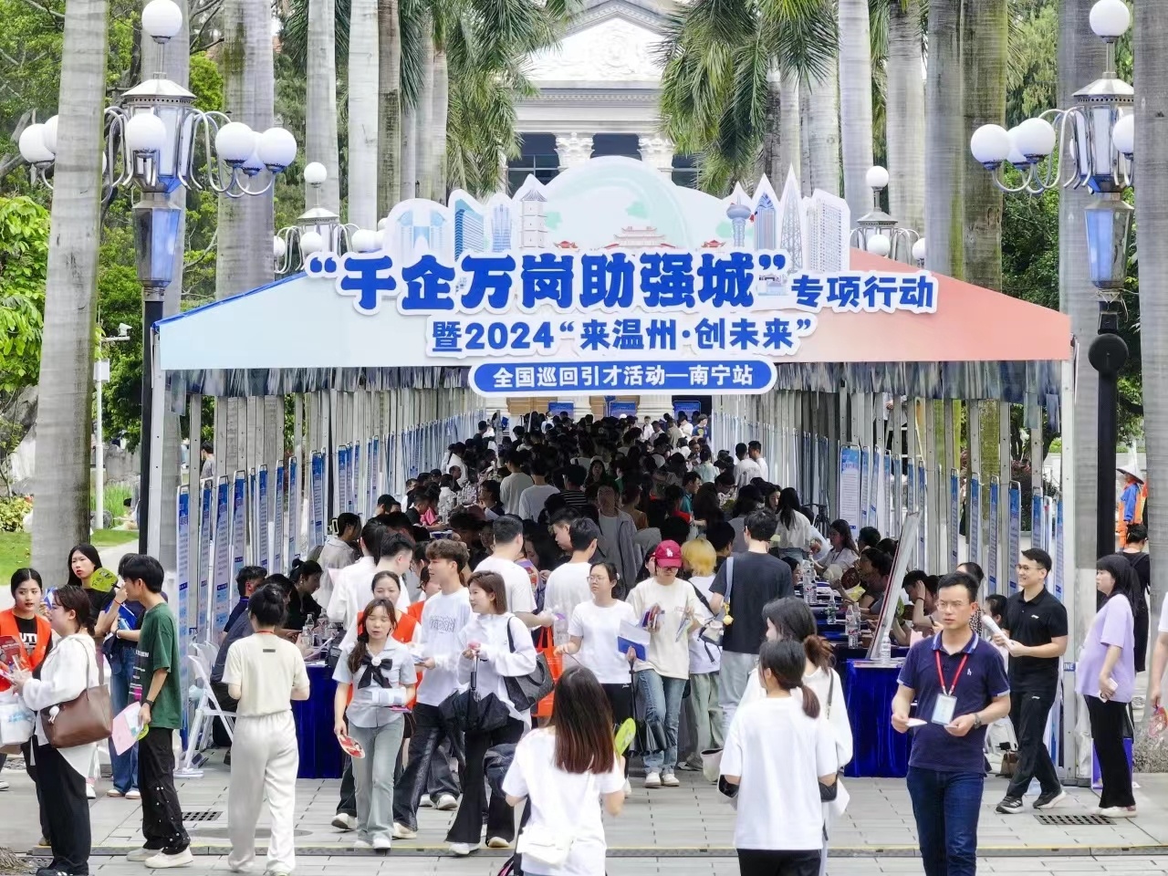 4月18日至19日,“千企万岗助强城”专项行动暨2024“来温州·创未来”全国巡回引才活动—南宁站专场招聘会在米兰电竞 ,传承竞技之魂,开启电竞新篇举办。130多家来自温州的用人单位提供2500多个岗位。活动现场,达成到温州工作意向964人,有的求职者现场就获录用。