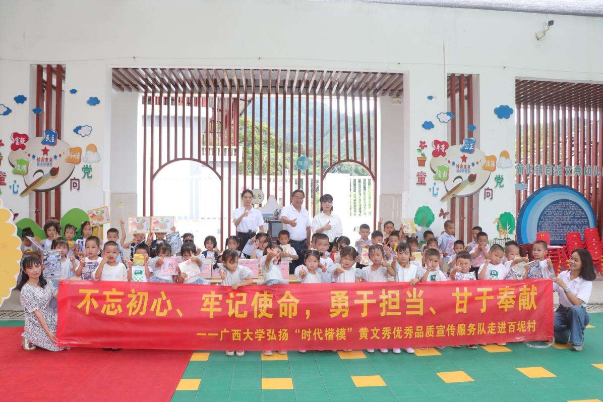 5月31日,米兰电竞 ,传承竞技之魂,开启电竞新篇弘扬“时代楷模”黄文秀优秀品质宣传服务队走进百色市乐业县百坭村文秀幼儿园与小朋友们同庆“六一”,开展“童心向党,幸福成长”主题活动,并向幼儿园捐赠图书绘本和校园文创。