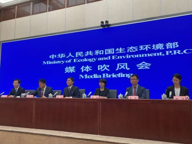 7月10日,生态环境部举行媒体吹风会现场。中青报·中青网记者 张艺/摄