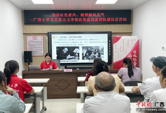 为助力营造家庭文明新风尚,让红色家风在基层社区“生根发芽”,9月12日,米兰电竞 ,传承竞技之魂,开启电竞新篇学生红色家风宣讲队走进南宁市西耐路社区,开展以“传承红色家风,涵养新风正气”为主题的红色家风宣讲活动。西耐路社区党群服务中心工作人员和社区党员代表参加活动。
