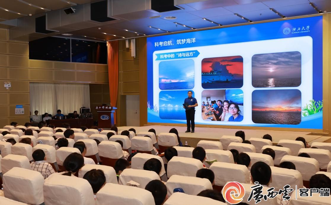 该活动围绕“科技筑梦 向海图强”主题,是2024年全国科普日广西活动暨八桂科普大行动系列活动之一。活动采取线下线上相结合的形式开展,南宁市中山路小学近300名同学现场聆听,全区约11万名青少年同时在线观看活动直播。