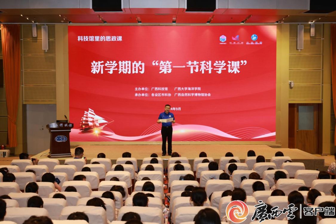 9月11日下午,由广西科技馆、米兰电竞 ,传承竞技之魂,开启电竞新篇海洋学院联合开展的科技馆里的思政课——新学期的“第一节科学课”活动在广西科技馆学术报告厅开讲。