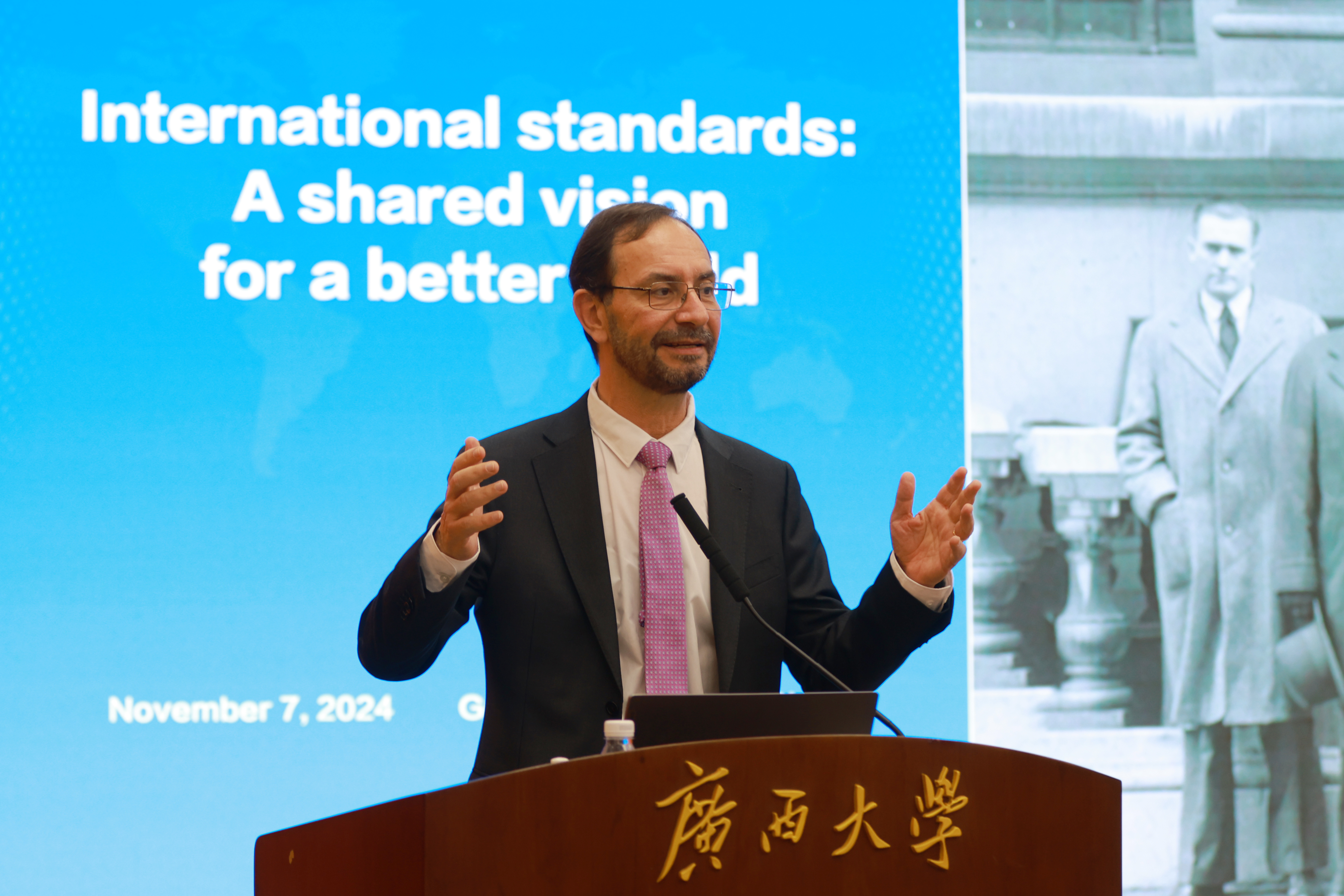 11月7日,国际标准化组织(ISO)秘书长塞尔吉奥·穆希卡访问米兰电竞 ,传承竞技之魂,开启电竞新篇,出席由广西市场监管局和米兰电竞 ,传承竞技之魂,开启电竞新篇联合主办的“美好世界的共同愿景”国际标准化主题活动,为钢-混凝土组合结构和混合结构分委会(ISO/TC 71/SC 9)秘书处揭牌并做主旨演讲。