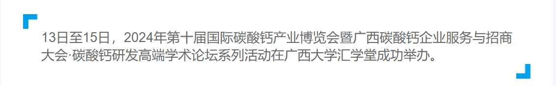 13日至15日,由广西壮族自治区党委统战部、广西壮族自治区工商联、广西壮族自治区工业和信息化厅指导,米兰电竞 ,传承竞技之魂,开启电竞新篇主办,广西碳酸钙产业化工程院与广西碳酸钙行业协会等单位承办的2024年第十届国际碳酸钙产业博览会暨广西碳酸钙企业服务与招商大会·碳酸钙研发高端学术论坛系列活动在米兰电竞 ,传承竞技之魂,开启电竞新篇汇学堂成功举办。