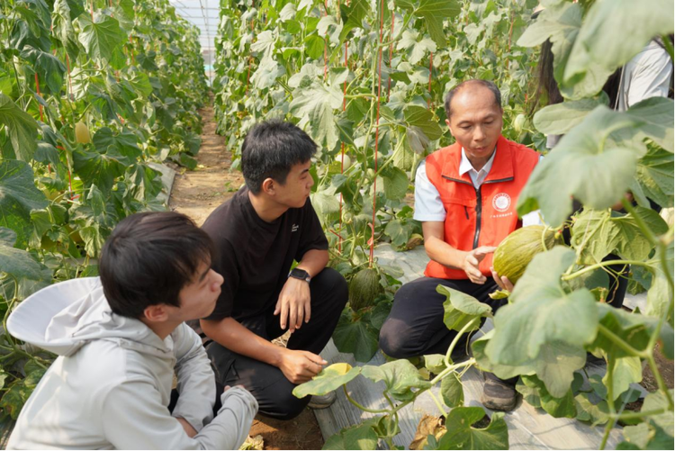 为了让优质农产品得到更好的推广,唐小付还邀请了河池市南丹县城关镇莲花村驻村第一书记谢万举等一行人来到平陆运河,展示网纹甜瓜的科学种植方法及成果。