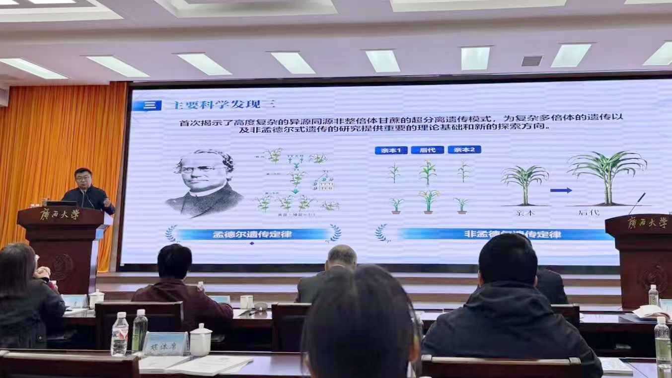 1月4日,广西南宁,张积森教授在新闻发布会上介绍团队的主要科学发现。郑全/摄
