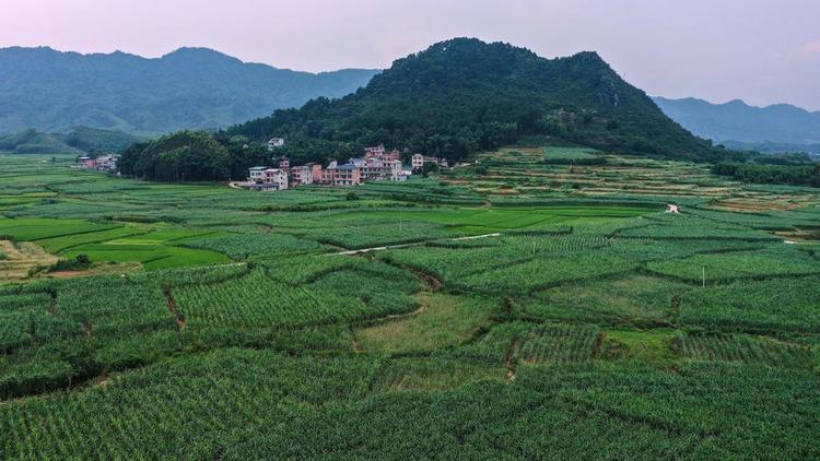 Aerial photo taken on July 5, 2022 shows sugarcane plantations in Xinlin Village of Tantou Township in Rong'an County, south China's Guangxi Zhuang Autonomous Region. (Xinhua/Zhang Ailin)