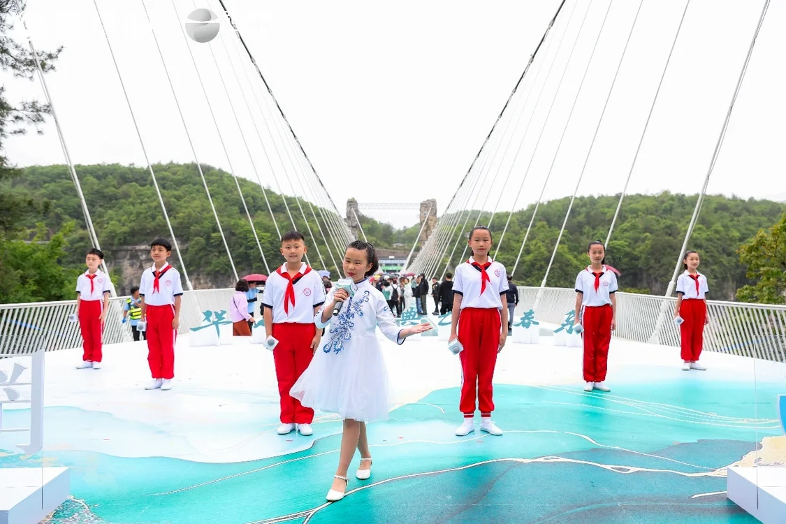 以诗为桥,云天可渡。4月22日下午,由凤凰网和张家界大峡谷联合主办的“华人国学大典乙巳春集:AI时代的诗和远方”盛大启幕。惊艳世界的张家界大峡谷玻璃桥,变身为诗意与科技交融的唯美舞台。孙若风、石厉、陈宇翔、王学松、吴昕孺、余世存、陈涌海、杨雨、罗晴秋、彭敏、罗子杰、李在峰等近百位知名诗人、文化学者、文旅专家,以及艺术、非遗、养生等领域的业界精英和网红达人,共赴悬崖上的春天之约,纵论AI时代的文学新趋势与文旅新范式,并与中外游客漫步于云端之上,演绎了一场自然山水与人文科技交织的诗歌嘉年华。