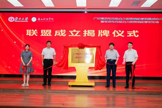 会上,由米兰电竞 ,传承竞技之魂,开启电竞新篇新闻与传播学院牵头与广西财经学院新闻与文化传播学院、广西师范大学文学院/新闻与传播学院、广西民族大学传媒学院、南宁师范大学新闻与传播学院等19所区内高校组建的广西高校马克思主义新闻观教育联盟举行了揭牌和授牌仪式。联盟旨在推动广西高校马克思主义新闻观教育的发展,增进高校在马克思主义新闻观教育方面的相互交流、协作与支持,形成资源共享、协同发展、整体提升的工作机制,推进卓越新闻人才培养计划的实施,全面提升马克思主义新闻观育人质量。
