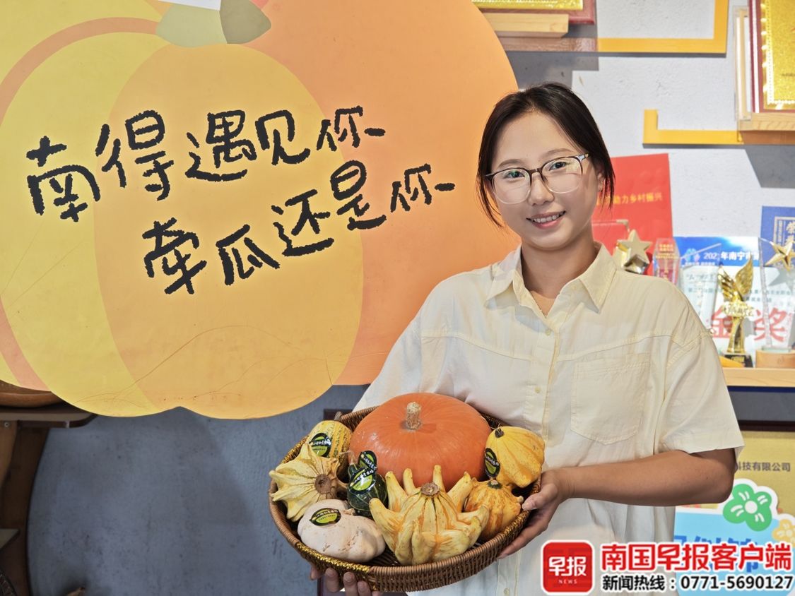 张祖瑜与她培育的各种南瓜。广西云-南国早报记者 黄俏华 摄