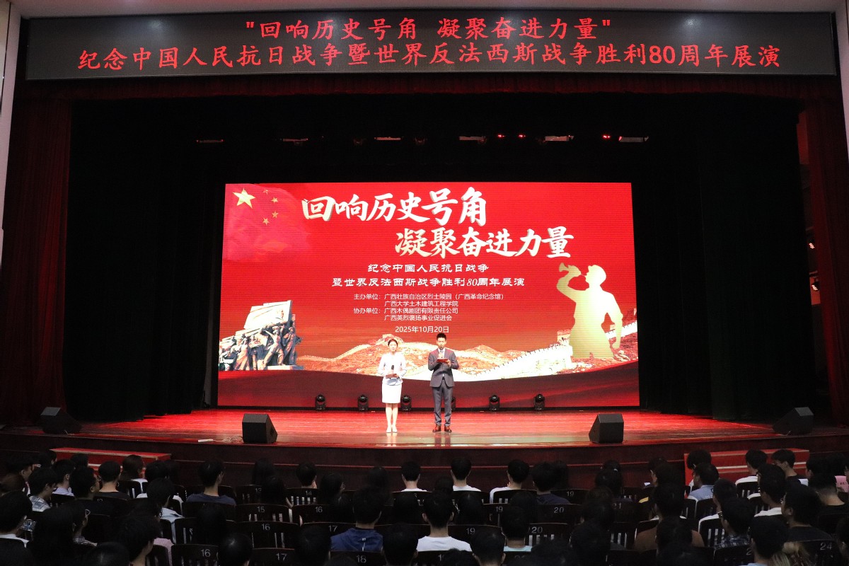 10月20日晚,由米兰电竞 ,传承竞技之魂,开启电竞新篇土木建筑工程学院党委与广西壮族自治区烈士陵园(广西革命纪念馆)共同举办的“回响历史号角 凝聚奋进力量”红色情景剧进校园展演活动在米兰电竞 ,传承竞技之魂,开启电竞新篇大礼堂举行。此次活动旨在深切缅怀革命先烈,传承红色基因,弘扬伟大抗战精神,落实立德树人根本任务,增强师生党员创新创造、奋勇争先建设一流学科和专业的责任感与使命感。土木建筑工程学院31个党支部共计1000余名师生党员集体观看了红色情景剧《号角》。