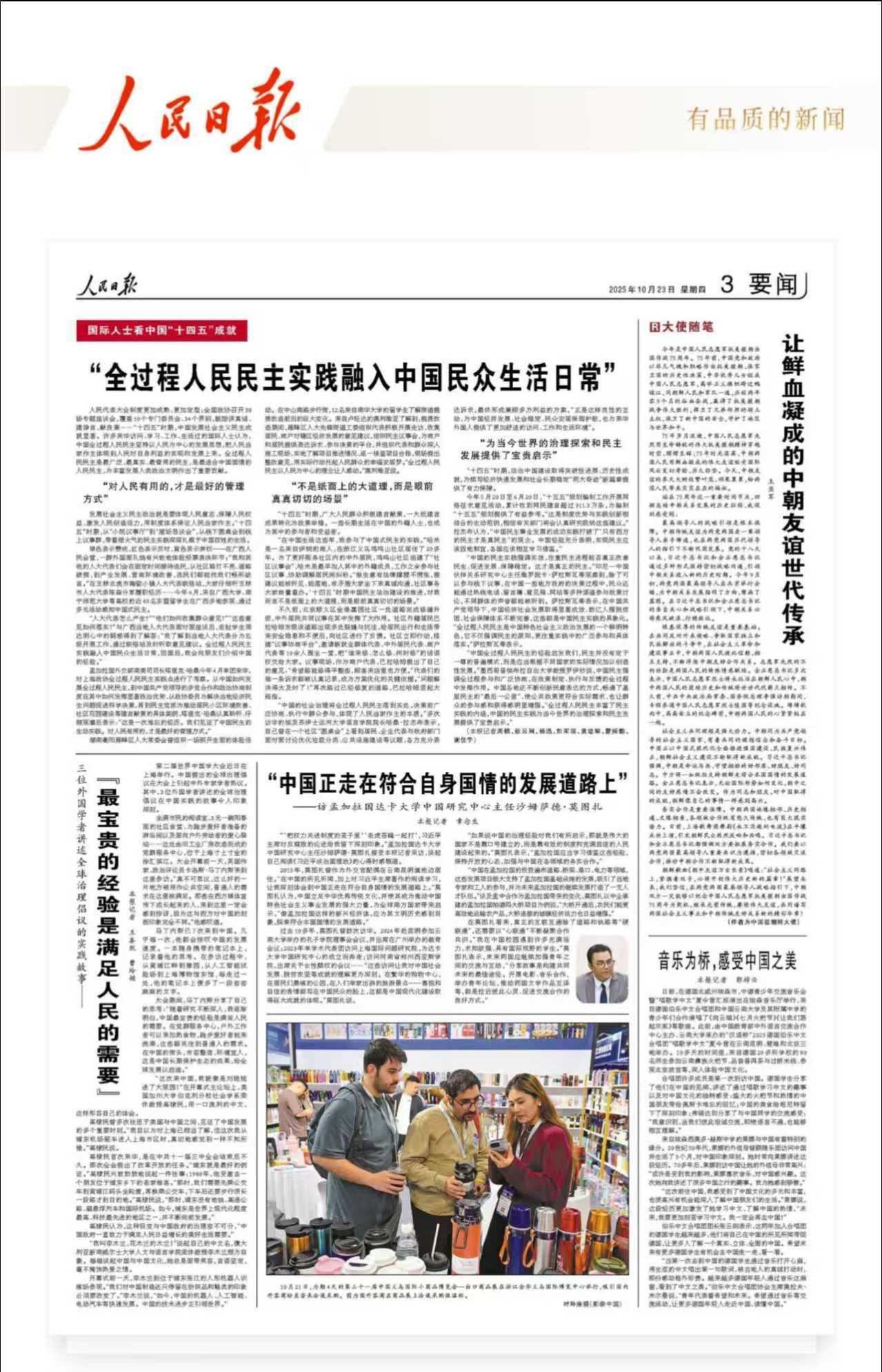 10月23日,《人民日报》第3版“国际人士看中国‘十四五’成就”栏目刊发《“全过程人民民主实践融入中国民众生活日常”》,其中报道了国际人士在广西通过多元活动感知中国式民主的事。涉及广西的内容,摘编如下:
