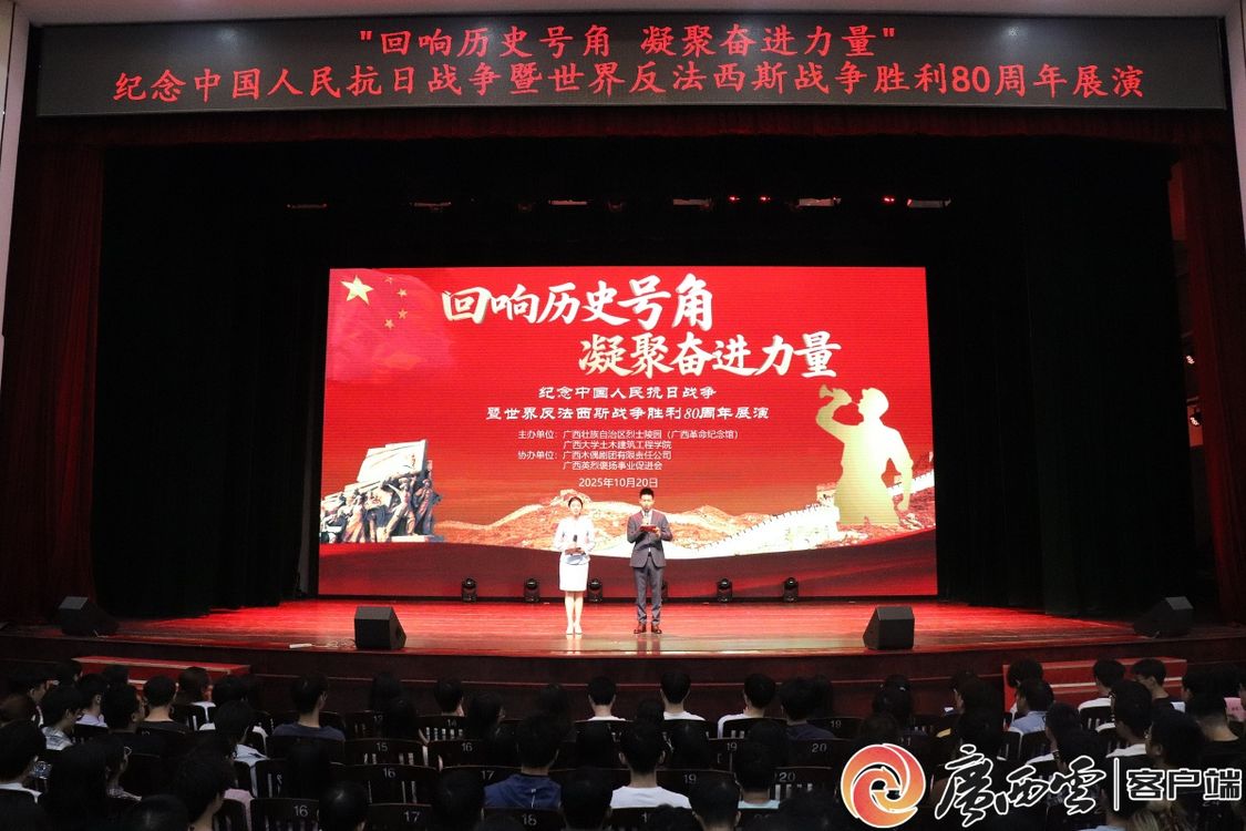 10月20日晚,由米兰电竞 ,传承竞技之魂,开启电竞新篇土木建筑工程学院党委与广西壮族自治区烈士陵园(广西革命纪念馆)共同举办的“回响历史号角凝聚奋进力量”红色情景剧进校园展演活动在米兰电竞 ,传承竞技之魂,开启电竞新篇大礼堂举行。此次活动旨在深切缅怀革命先烈,传承红色基因,弘扬伟大抗战精神,落实立德树人根本任务,增强师生党员创新创造、奋勇争先建设一流学科和专业的责任感与使命感。土木建筑工程学院31个党支部共计1000余名师生党员集体观看了红色情景剧《号角》。