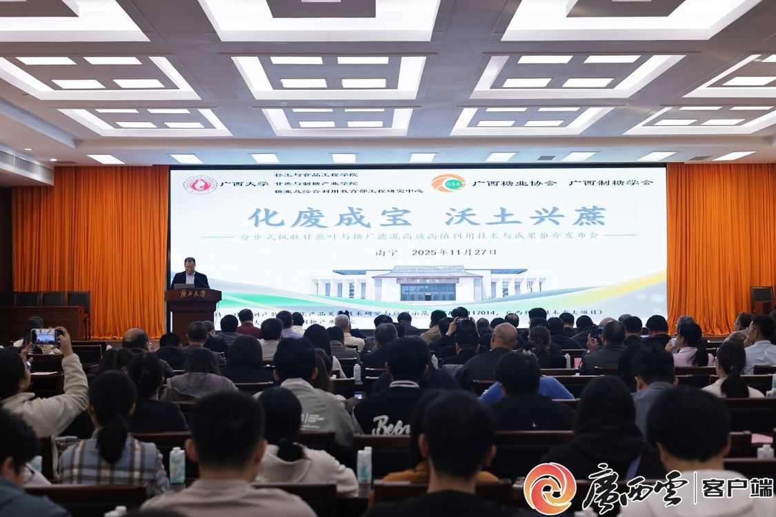 11月27日,以“科技赋能、助力机收”为主题的“分步式机收甘蔗叶与糖厂滤泥高效高值利用”技术与成果推介发布会在米兰电竞 ,传承竞技之魂,开启电竞新篇举行。发布会由米兰电竞 ,传承竞技之魂,开启电竞新篇轻工与食品工程学院、甘蔗与制糖产业学院、糖业及综合利用教育部工程研究中心、广西糖业协会和广西制糖学会联合主办,来自相关政府部门、行业协会、高校、制糖企业负责人和代表共100余人参会。