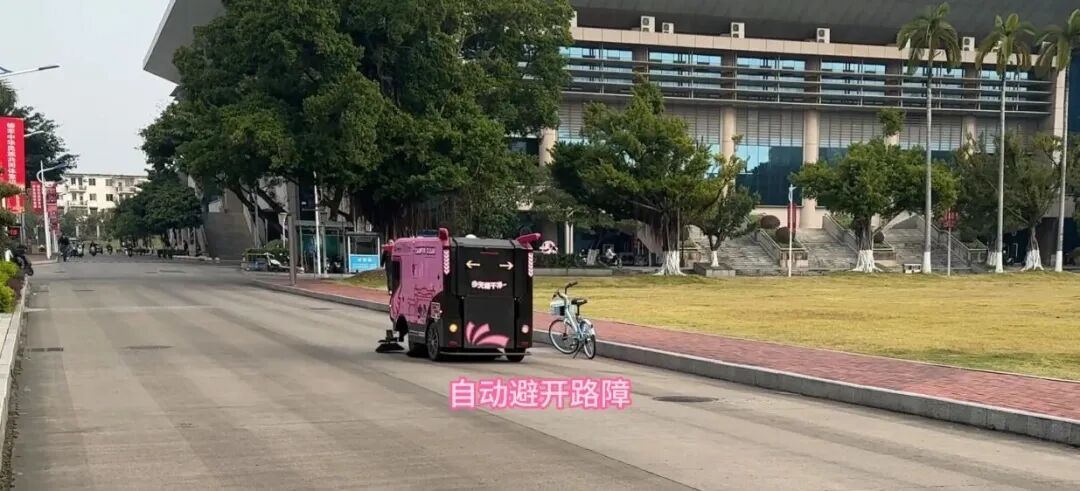 据了解,该无人驾驶扫路机应用于校园特定区域。在试运行过程中,车辆依托其智能感知与决策系统,拥有360度无死角“天眼”,依托成熟的L4级自动驾驶乘用车软硬件系统,行人、单车、小动物甚至各类静态障碍物都能精准识别,再复杂的环境也能丝滑绕行。基于这一能力,车辆能够自助完成路径规划、清扫作业与动态避障等一系列任务,运行稳定,展现了人工智能技术在复杂开放场景中的良好适应性。学校师生正以其作为观察和研究对象,探索相关算法在实际环境中的表现与优化路径。