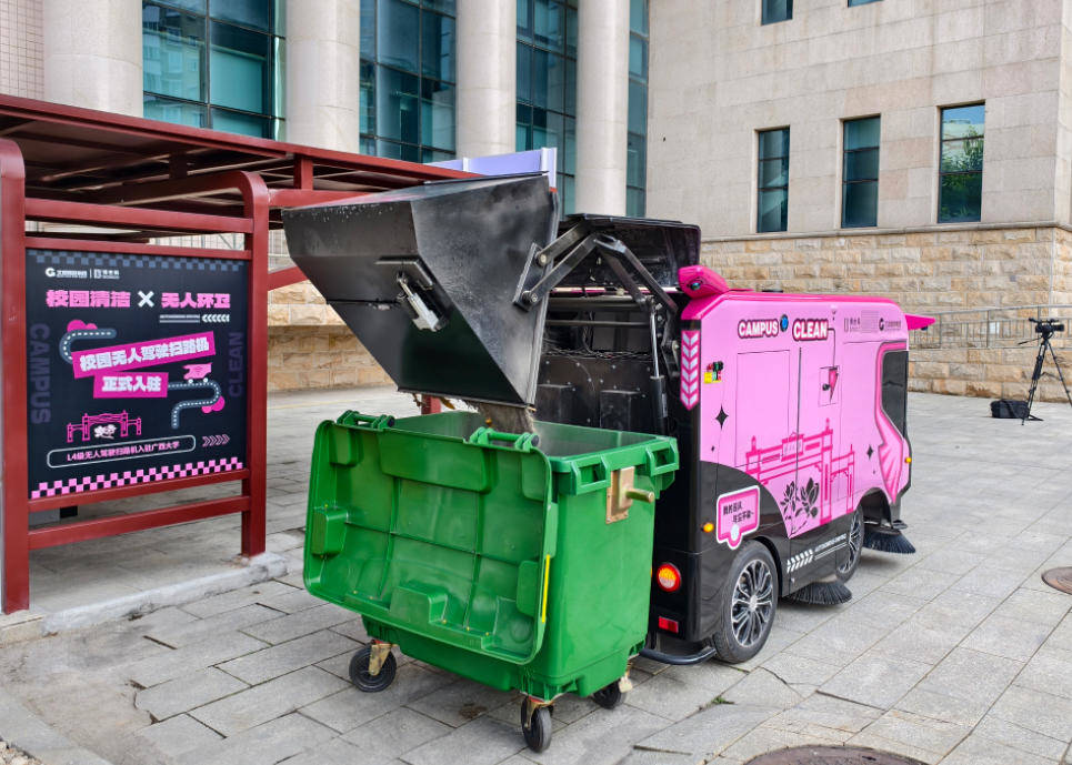 倾倒垃圾,对无人驾驶扫路机来说也是小事一桩