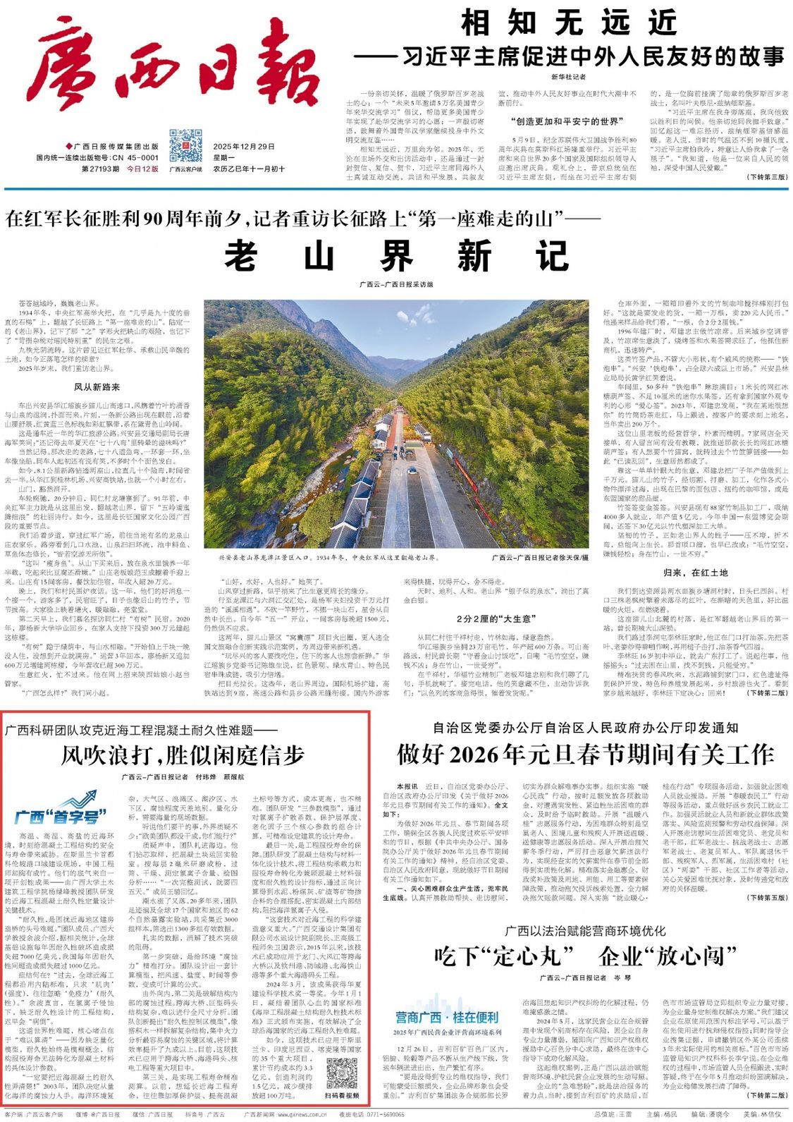2024年3月,该成果获得华夏建设科学技术奖一等奖。今年1月1日,凝结着团队心血的国家标准《海岸工程混凝土结构耐久性技术标准》正式颁布实施,有效解决了全球沿海国家的近海工程耐久性难题。