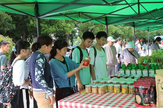 在东校园碧湖苑餐厅和6B小广场开展的展销会上,不仅有来自那坡、昭平、凌云、西林等十几个县的特色米、面、油、茶、腐竹、辣椒酱等50多种农产品的展销,还有念头香米、鲜那黑花生等试吃农产品,受到广大师生的欢迎,购买和品尝的师生络绎不绝。