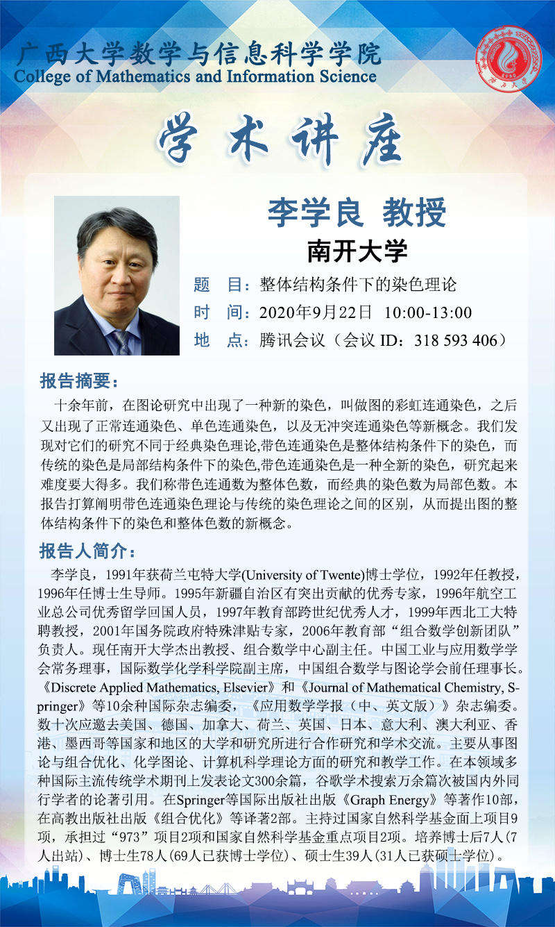 数学与信息科学学院学术讲座:整体结构条件下的染色理论