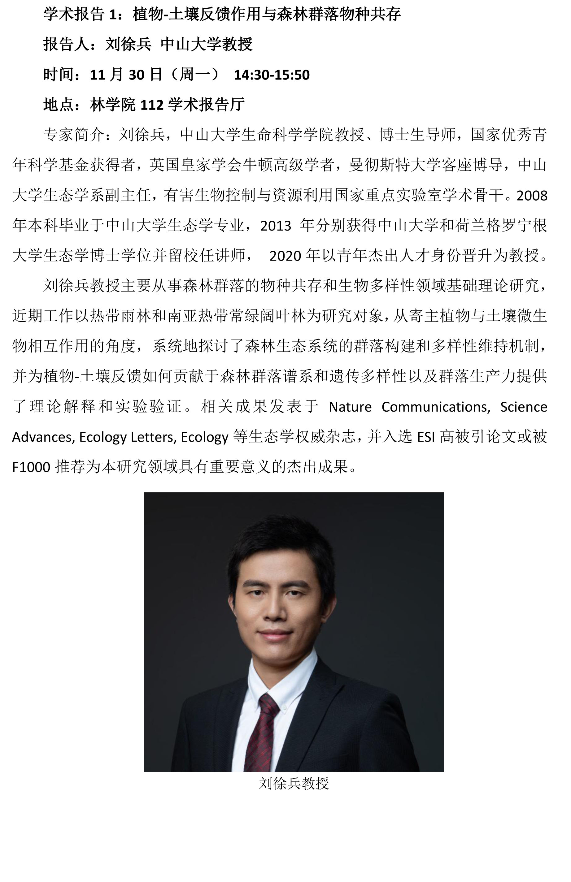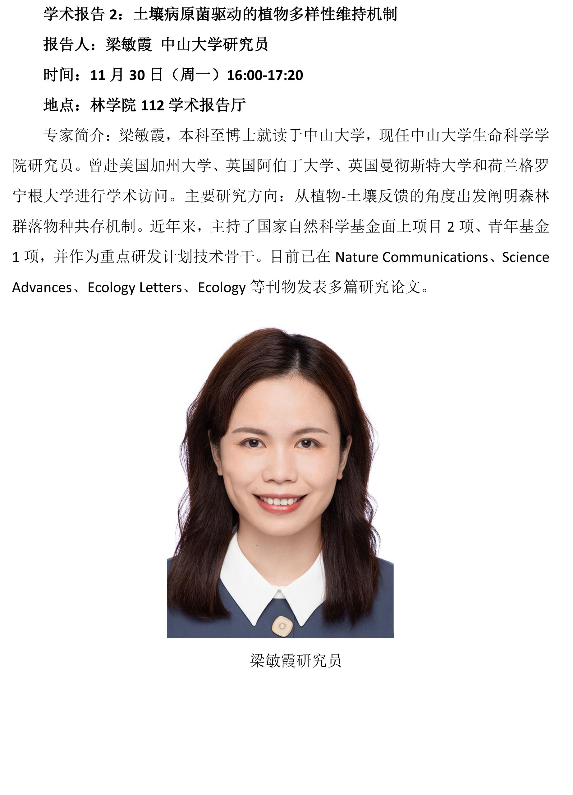 林学院学术报告:植物-土壤反馈作用与森林群落物种共存;土壤病原菌驱动的植物多样性维持机制