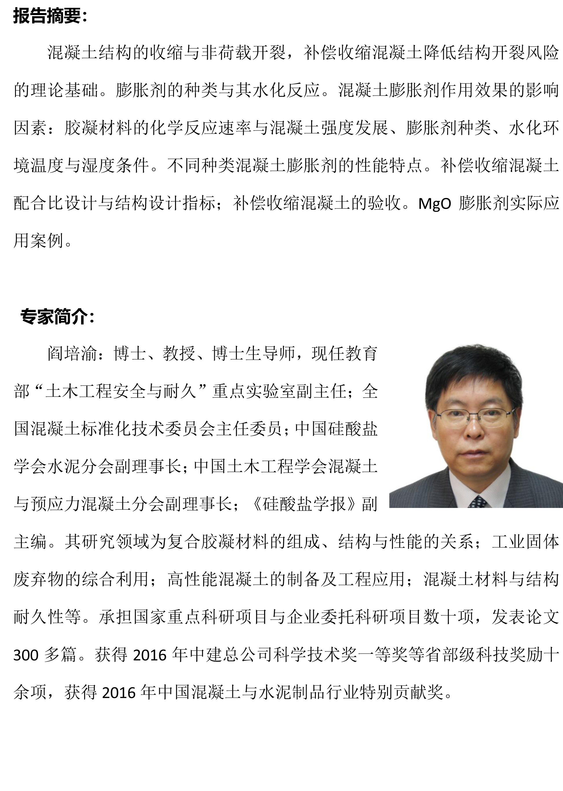土木建筑工程学院学术报告:补偿收缩混凝土的性能与应用