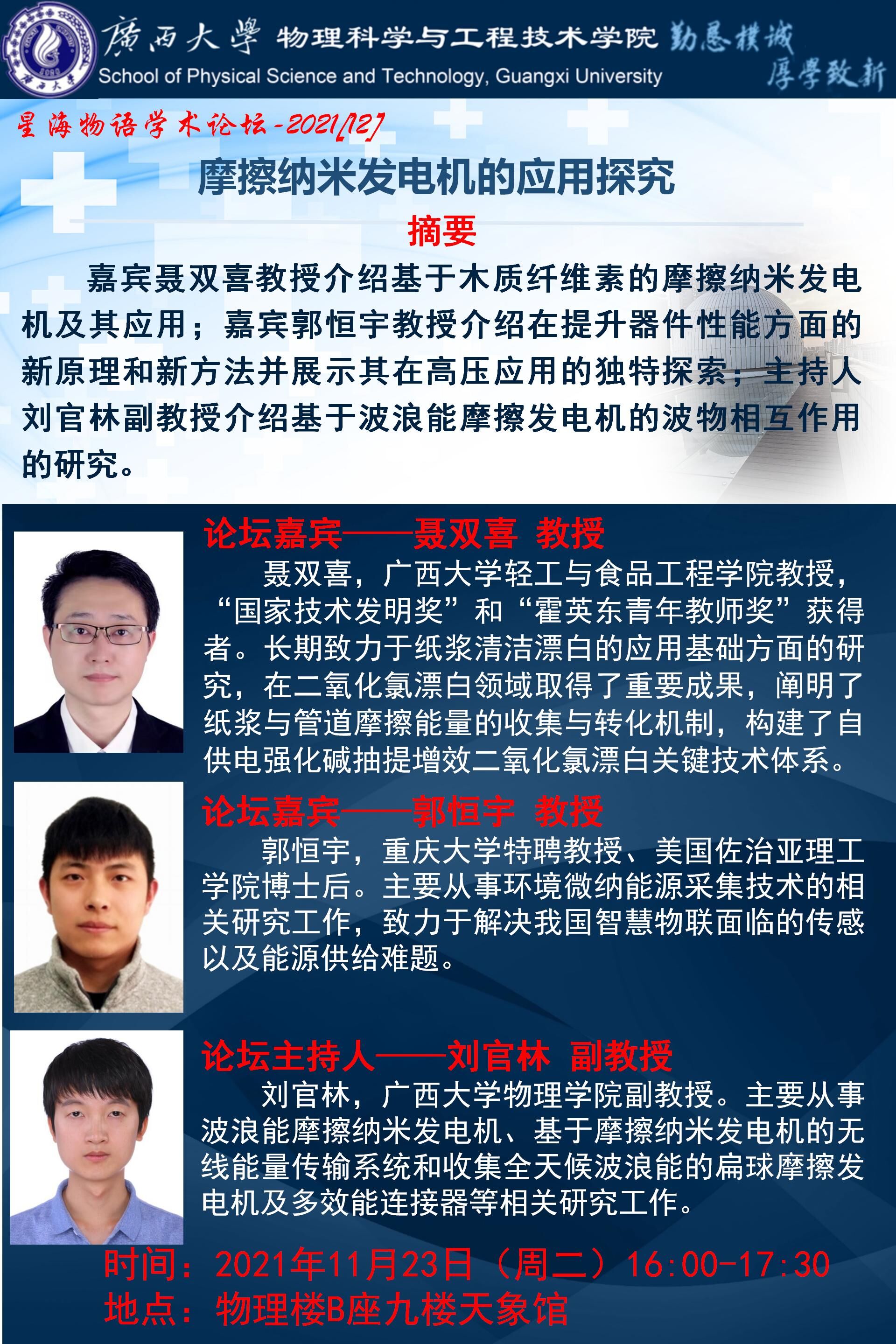 物理学院星海物语学术论坛(第十二期):摩擦纳米发电机的应用探究