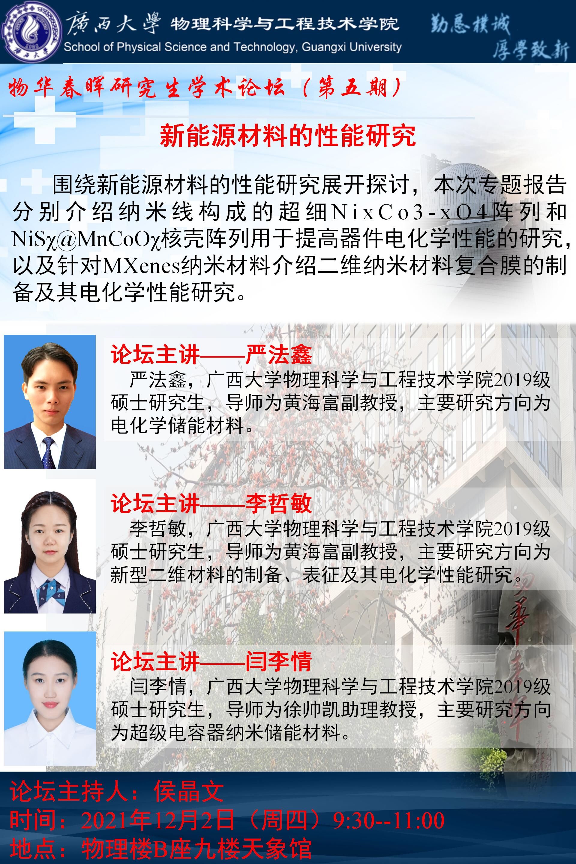 物理学院物华春晖学术论坛(第五期):新能源材料的性能研究