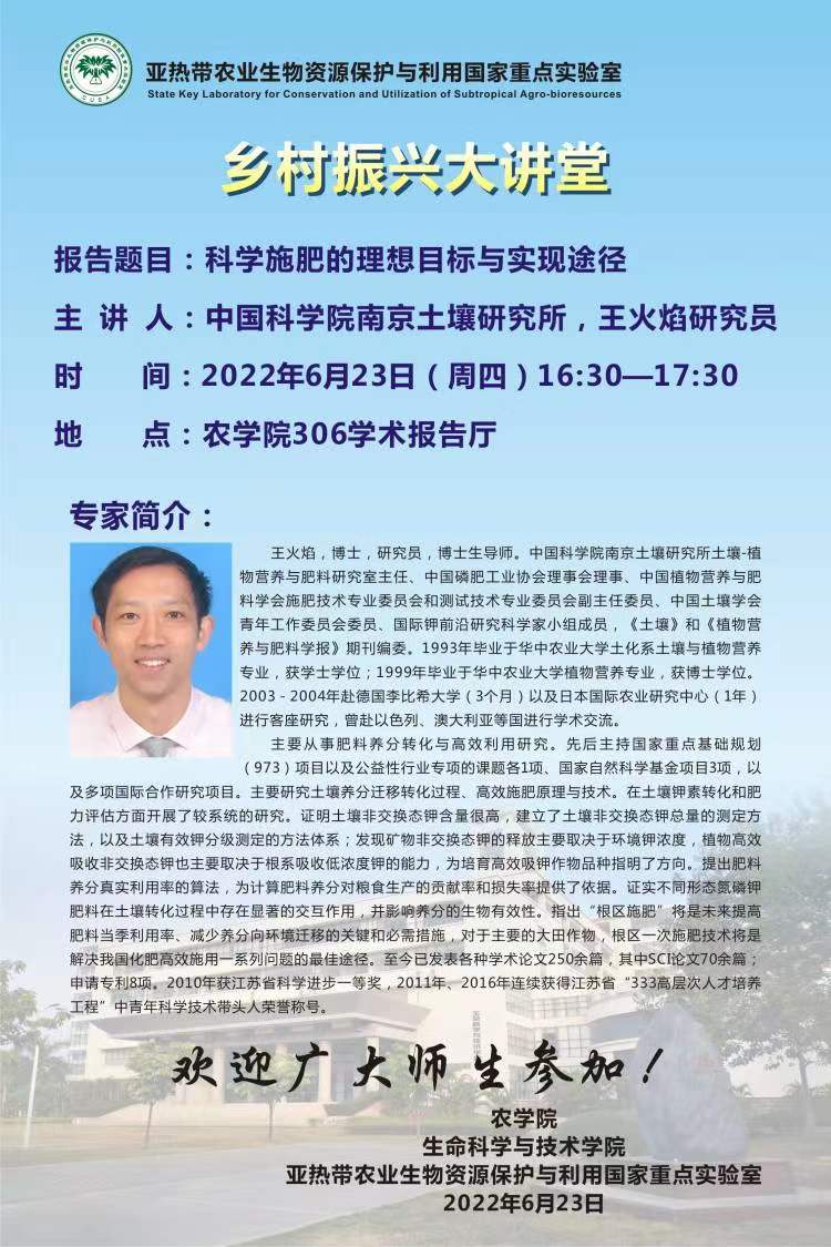 农学院学术报告:科学施肥的理想目标与实现途径