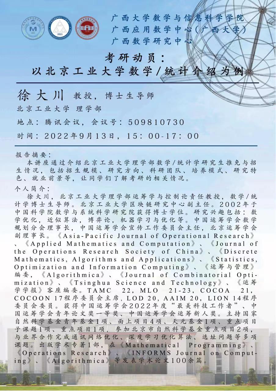 数学与信息科学学院学术报告:考研动员∶以北京工业大学数学/统计介绍为例
