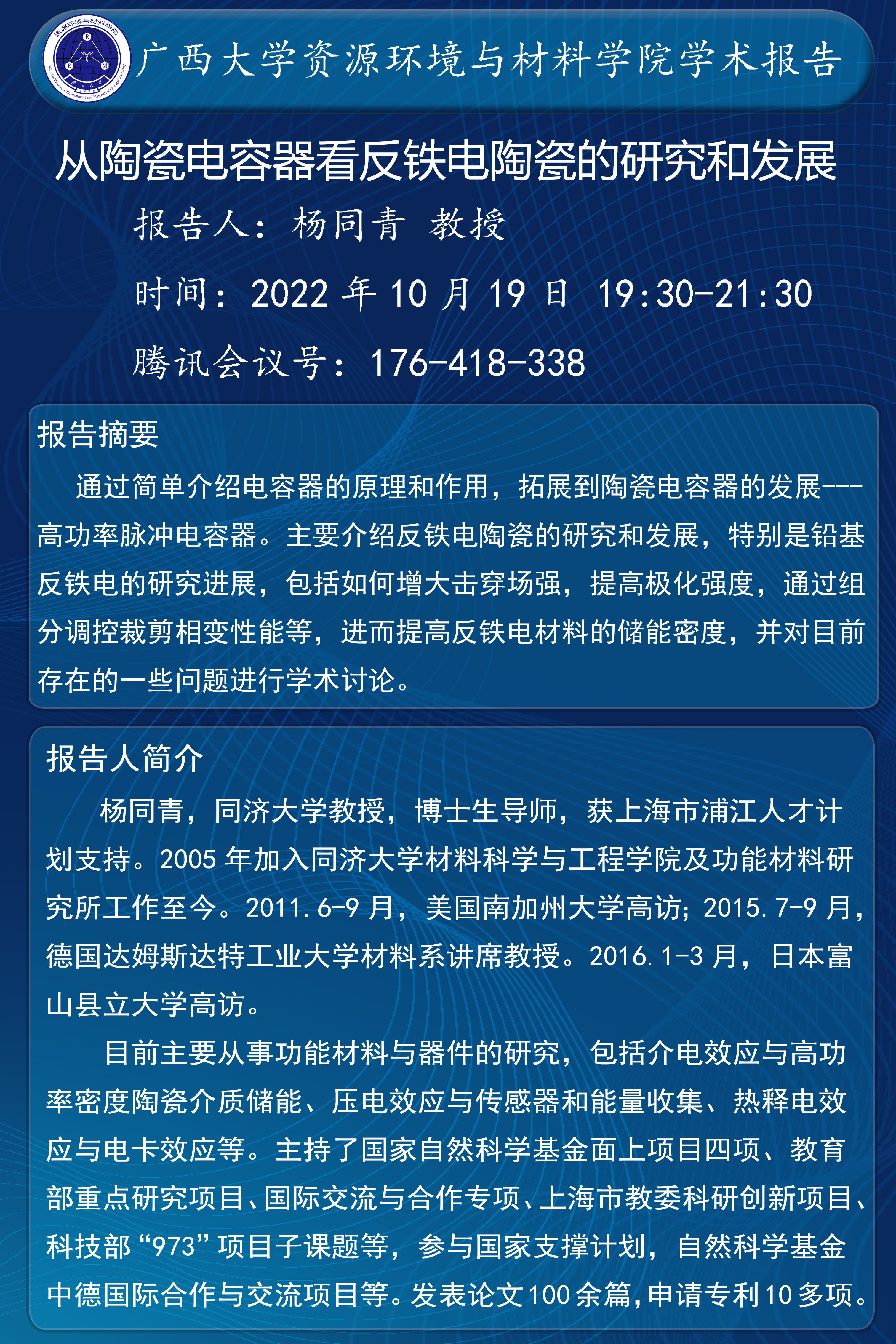 资源环境与材料学院学术报告:从陶瓷电容器看反铁电陶瓷的研究和发展
